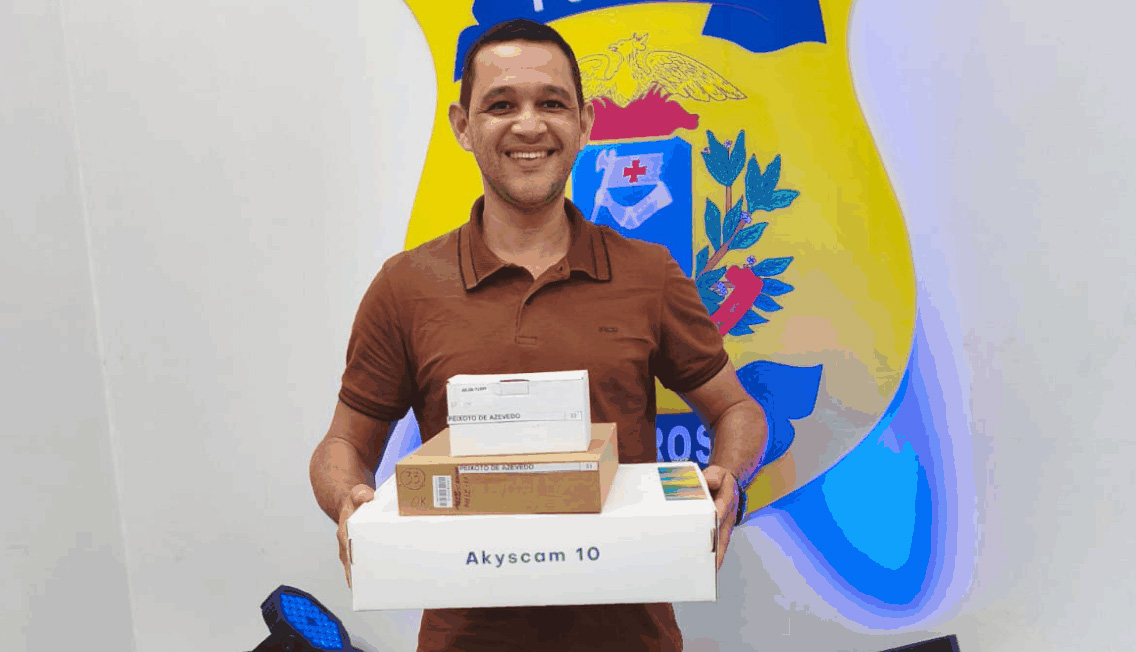 O kit entregue é composto por leitor biométrico de impressões digitais, câmera fotográfica digital para captura facial, pad de assinatura digital e um kit completo de cenário para fotografia, itens essenciais para a emissão de documentos de identificação com mais segurança e eficiência.